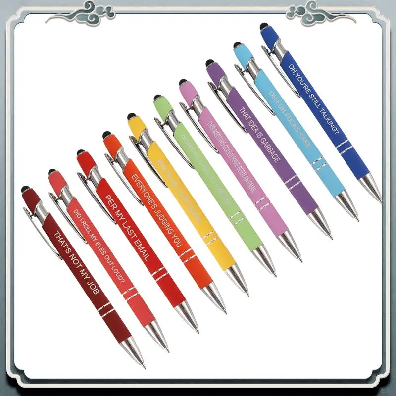 10 Pieces Office Pens Funny Pens Demotivational Sarcastic Ballpoint Pens Macaron Touch Stylus Pens For Office, Black